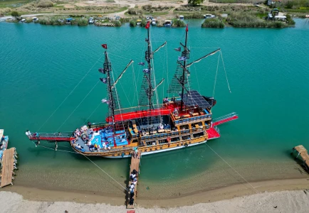 Вирушайте в одноденну піратську пригоду з Сіде. Розпочніть з комфортного трансферу від вашого готелю автобусом. Сісти на піратський корабель і вирушити у неймовірні бірюзові води Середземного моря.